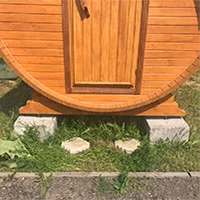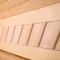 | Полки, трапики | Полок в парилке из осины двуступенчатый без подспинников, шириной 60см и 40см (низкая с вырезом у печи), полок хвойный в помывочной 50см шириной — 1шт. Полок хвойный в комнате отдыха — 2шт., трапик хвойный решетчатый — 2шт., столик увеличенный. |