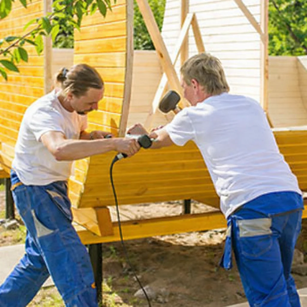 | Баня | Из хвойного мини бруса толщиной 42мм, снаружи обработана в 2 слоя премиальной краской Tikkurila / DUFA на основе льняного масла. Стянута металлическими обручами с регулировкой усадки. С фигурными ножками и опорными брусками 140х90мм. Двери: входная деревянная со стеклянным окошком, в парилку тонированая, стеклянная. Кровля — гибкая черепица. Металлический отлив в цвет кровли. |