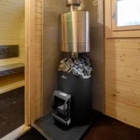 | Печь, дымоход | Дровяная печь Grill'D Aurora 160 short (затопка из парилки) с дымоходом в комплекте, камни для бани, защита стен-минерит, пол-напольный экран. |