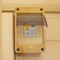 | Электрика | Кабель ВВГ нг сечением 2,5 мм² для розеток и 1.5 мм² для освещения, светильник Linder — 1шт., светильник влагозащищенный — 2шт., выключатель двухклавишный, розетка влагозащищенная. Розетка уличная ССИ-113, вилка ССИ-013 (ввод). Допустимая потребляемая мощность 3,5 кВт. Дифавтомат 16 ампер, короба в цвет дерева. |